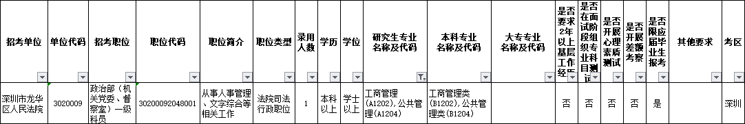 广东省各级人民法院2020年考试录用公务员职位表