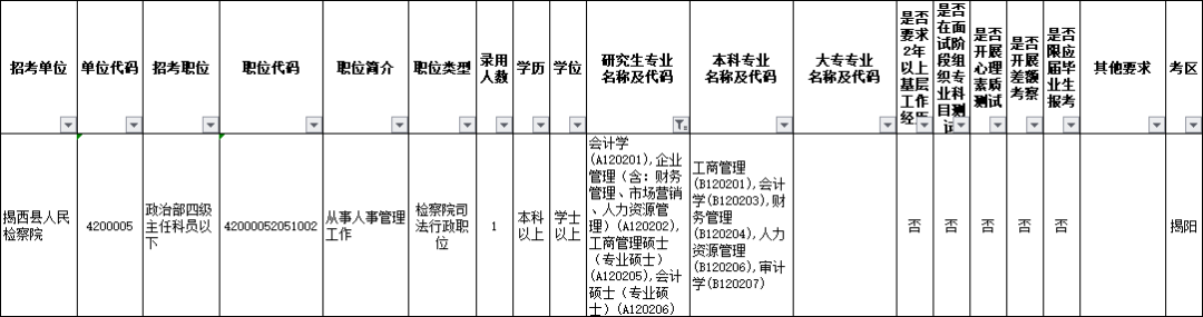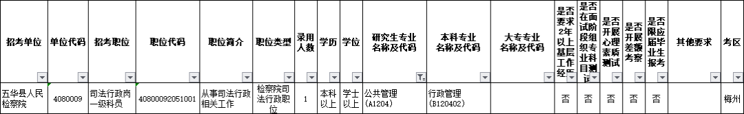 广东省各级人民检察院2020年考试录用公务员职位表